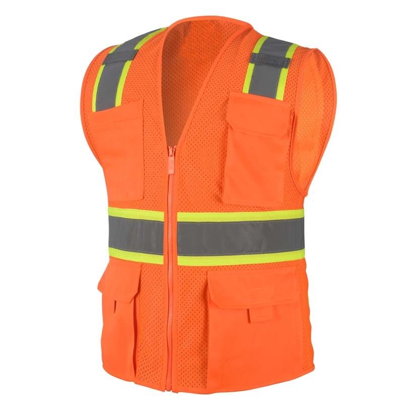 뜨거운 판매 2 톤 지퍼 클로저 hi vis 안전 조끼 멀티 포켓 엔지니어 보안 조끼
